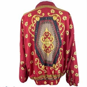 Glorious 80’s red windbreaker with gold floral and scroll print
