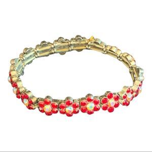 Vintage red crystal sparkling floral bracelet o/s