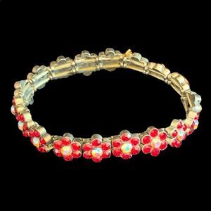 Absolutely beautiful bright red crystal flowers with a center ab crystal, stretches to fit mist wrists. Please see all photos for full description