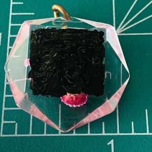 Vintage reverse carved dimensional lucite detailed orchid on black pendant