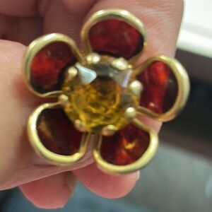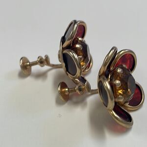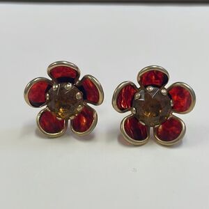 Gold tone. Unsigned. Flower motif measures Just under 1 inch in diameter. Great condition