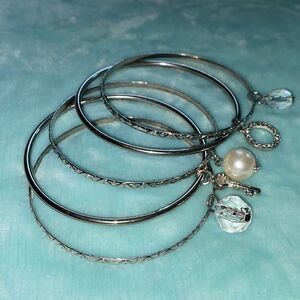 This set of elegant bangle bracelets each has its own little charm. Such a beautiful accessory for any dress up occasion or to the office. A wonderful gift idea.