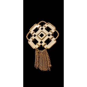 vintage jewelry gold pendant geometric brooch statement accessory boho chic timeless fashion elegant design artisan craftsmanship midcentury style luxury gift heirloom piece sustainable fashion art deco inspired ornate detailing unique collectible retro glam textured metal craftsmanship