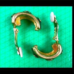 Vintage signed Swarovski Swan Clip-on Black Enamel & gemstone Earrings