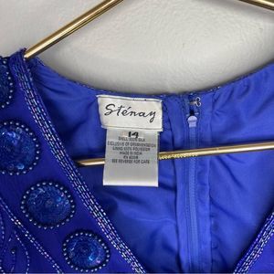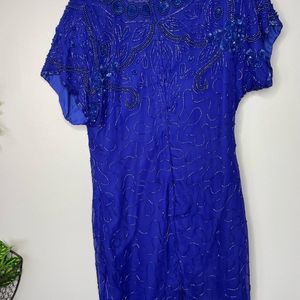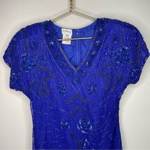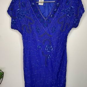 Vintage silk beaded Cocktail Evening Formal Dress Royal Blue