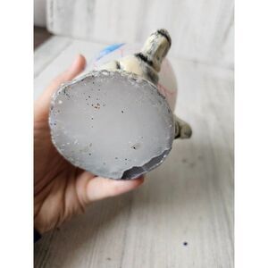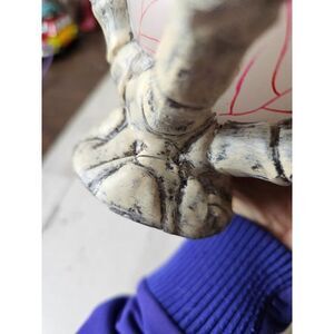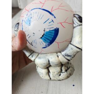 was broken, wax at the bottom was glued back together, never used, does have damage on the eye, could be repainted, about 5-in tall by 4 in by 4 in