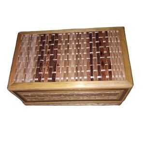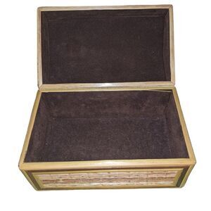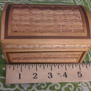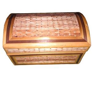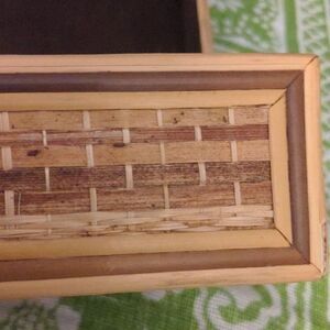 Vintage small wooden and straw weaved box
