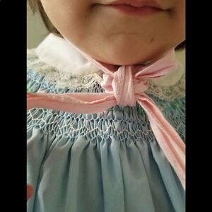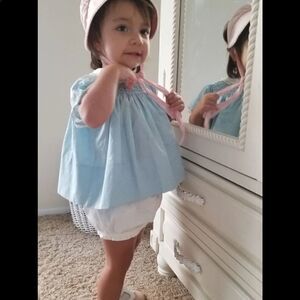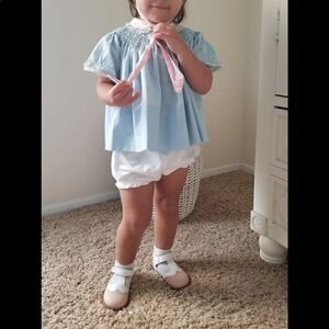 Adorable light baby blue smocked dress- your baby will look like a little doll.