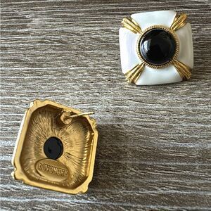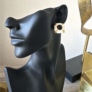 Vintage style white and black detail stud earrings in 18k gold plated hardware