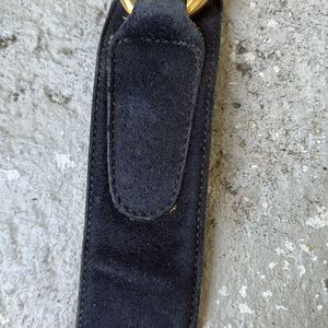 This is a great vintage piece , but please look at the pictures. Does need slight cleanup and has wear on the buckle. Dark navy blue and color.