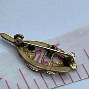 Vintage wishbone enamel C clasp pin. I believe it is brass. Two painted leaves and a glass crystal.