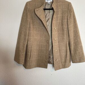 Size 10, beautiful windowpane design. No flaws. Wool blend