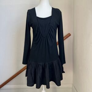 Vintage y2k black funky avant garde dress with ruffle skirt and long sleeves