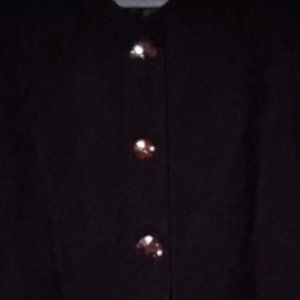 This gorgeous rayon/linen blend dress from Evan Picone is beautifully tailored and fully lined. It has short sleeves, a back hidden zipper, light shoulder pads and 3 unique animal buttons in front that are made of shell/bone. This is a one piece dress, but gives the appearance of being a tunic over a straight skirt. Very classy and flattering! This dress was made in the USA and is an 85% Rayon/15% Linen Blend. Size 14. EUC