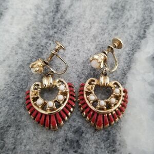 Vintate Retro Red Dangle Clip On Earrings, Screw Back, Retro 50s Style, Estate