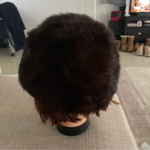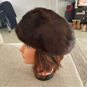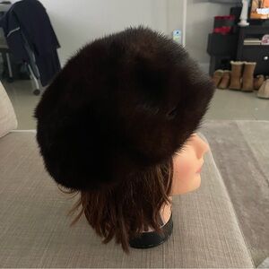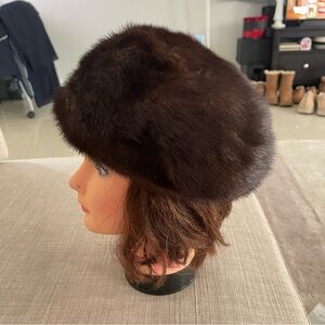 This elegant beret-style hat is crafted from plush, dark brown mink fur, offering a luxurious and sophisticated look. Its classic rounded shape makes it a timeless accessory for any winter wardrobe. The rich chocolate hue adds a touch of warmth and style to your ensemble.