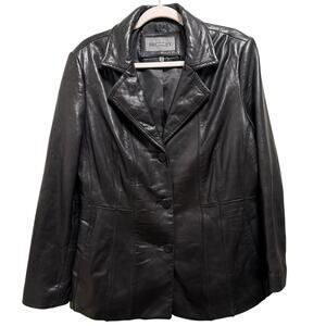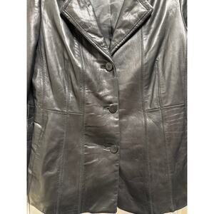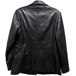 Vintgae Y2K Bromley Buttery Soft Black Leather ButtonUp Long Line Jacket Size XL