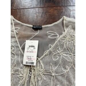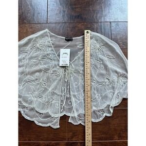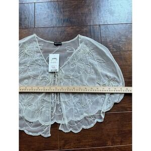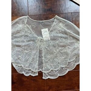 Vintge Y2K New Kenneth Cole Sheer Beaded Tie Front Cardigan Shawl One Size