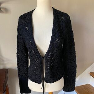 Vintyage The Limited Black Hand Knit Crochet Cardigan Sweater Size M