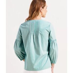 Vinyard Vines Striped Pintuck Long Sleeve Top in Stripe Seawall Green Size S