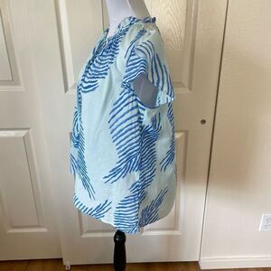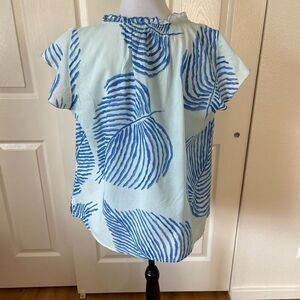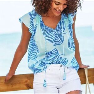 Vinyard Vines Flutter Sleeve Cotton Gauze Tassel Top Blue and Green Floral Size