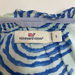 Vinyard Vines Flutter Sleeve Cotton Gauze Tassel Top Blue Floral Size Small