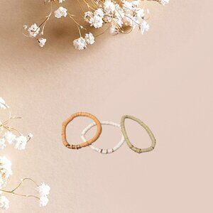 Vinyl Bracelets in Faded Green, White and Light Orange with Gold Spacers - New