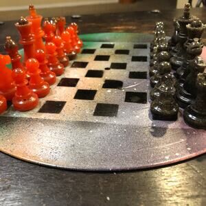 Introducing our unique Vinyl Record Chess Sets. Each set features handcrafted vinyl records transformed into eye-catching chess sets in a variety of vibrant colors. These one-of-a-kind chess sets are not just a game, but a piece of art to elevate your game nights and decor. Embrace the nostalgia of vinyl records with a modern twist in these bespoke, limited edition chess sets.