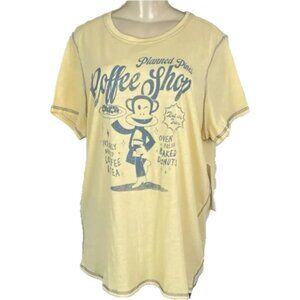 ITEM: Vinyl Icons +3 Yellow Crew Neck Paul Frank Julius chimpanzee Coffee Shop Graphic Short Sleeve T-Shirt