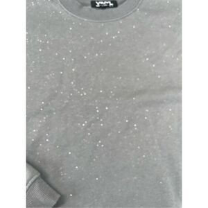 Cozy and cute gray pullover sweatshirt featuring an allover glittery shimmer for a subtle pop. This cropped, relaxed-fit piece is perfect for minimalist or elevated loungewear looks. Soft and comfortable for casual wear or layering. Please see photos for measurements.