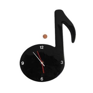 Vintage vinyl battery wall clock in the form of a music note by Small World Greetings. Excellent condition. Works well using 1 AA battery (not included). 7"X 1" X 12"H. Excellent decor for kids' room, study, office, or library room.