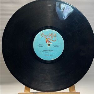 Experience the classic sound of 'Rappers Delight' with this iconic vinyl from . Featuring a vibrant orange and black design, this record is a must-have for any music enthusiast.