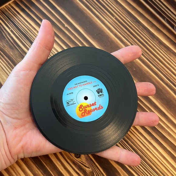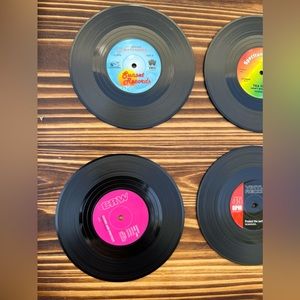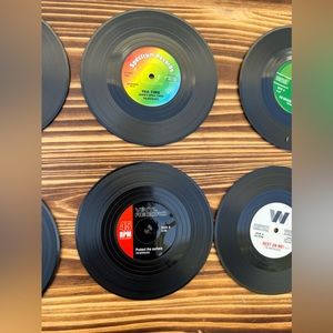 Cute vinyl vintage style record coasters. Unused set of 6 ea. Please check my closet for possible bundling. Record is 4” wide. Tags: music lover gift birthday anniversary party event entertainment drinks coffee Christmas stocking stuffer