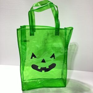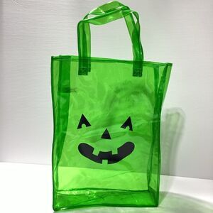 Vinyl Trick Or Treat Tote With Jack O Lantern Face Clear Green Large