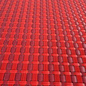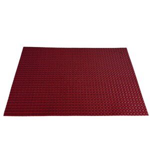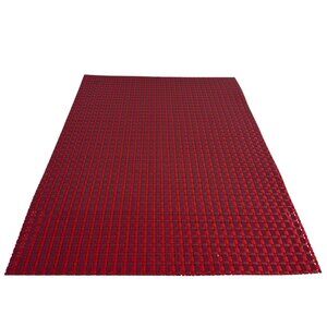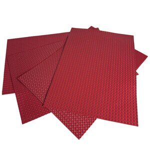 These Red and Burgundy Placemats are coverings or pads that can be used indoor on a kitchen or dining table at each place setting or outdoors pool side or for outdoor entertaining. They serve both decorative and practical purposes, protecting the table from heat, spills, and scratches while also enhancing the table's aesthetic appeal. These Placemats are rectangular and woven vinyl allowing for versatile use in different settings.