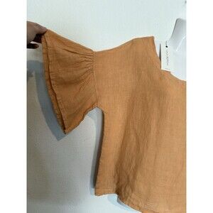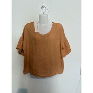 Viola Borghi 100% Linen Top Small Cropped Peach Italy Short Bell Sleeves New NWT