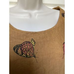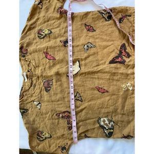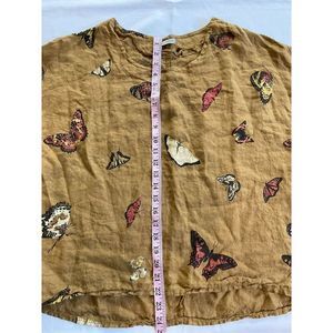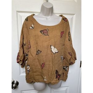 Viola Borghi Butterfly Print Linen Blouse Women L Flutter Sleeve Italy Lagenlook