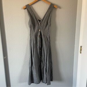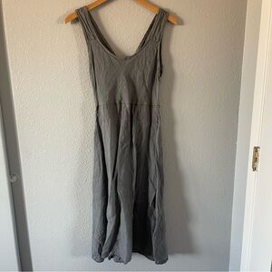 Viola Borghi Gray Linen Button Up Sleeveless Midi Tank Dress Women's Size Small