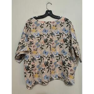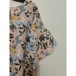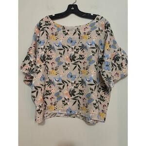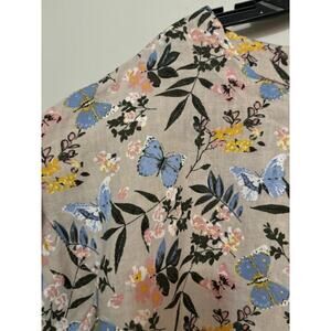 Viola Borghi Medium 100% Linen Top Butterfly Floral Feminine Made in Italy Bell Sleeve