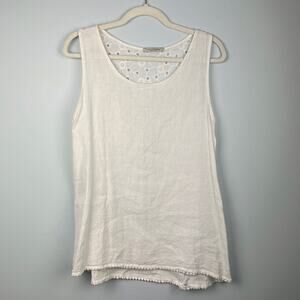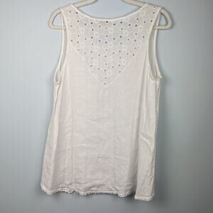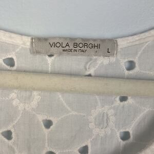 Viola Borghi sleeveless white linen eyelet crochet summer blouse size large