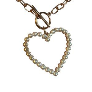Viola Pearl Heart Toggle Clasp Necklace Gold White NWT