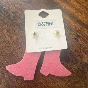 Charming earrings with heart and boot design. Pink beads create a playful look. Perfect for adding a fun touch to any outfit.