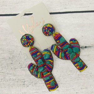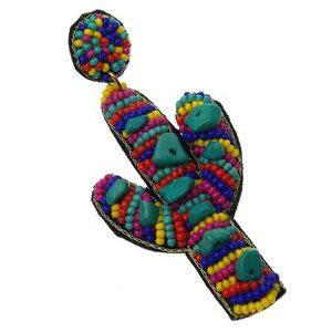 Earrings are made with many beads. Cacti are made with multi colored beads and turquoise stones.
