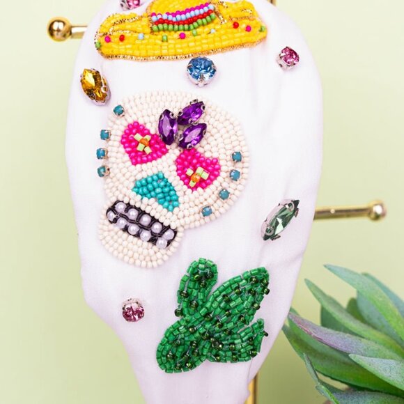 Viola White Day Of The Dead Seed Bead Knotted Headband