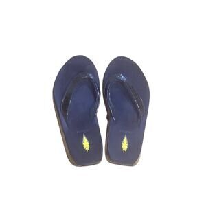 Violatile Flip Flops Thong Wedge Sandals Sz 7 Navy Blue Embossed Slip-On