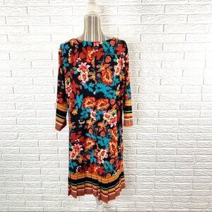 Multicolored floral dress with a striped sleeve hems and pleated hem by Violet B. Size 2X. New without Tags.