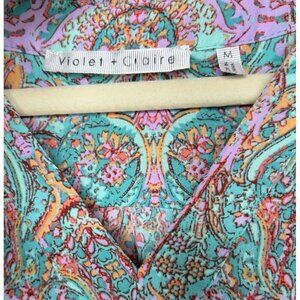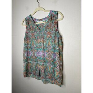 Violet + Claire Blouse Sleeveless Tank Blue Paisley V Neck Size Medium
