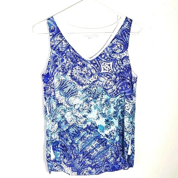 Violet & Claire Blue & White Sleeveless Layered High-Low Blouse,Size Small, NWOT