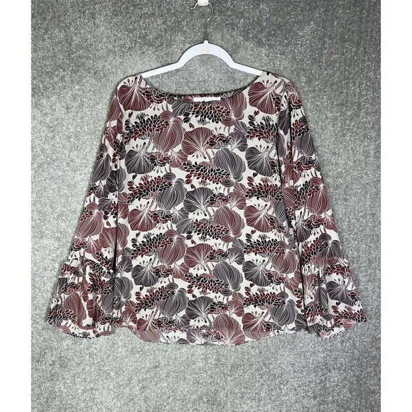 Violet + Claire Floral Long Ruffle Bell Sleeve Tunic Top Womens Size XL Gray Red