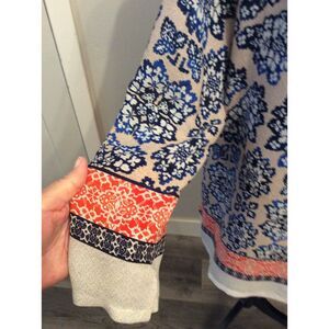 Violet + Claire Floral XL Tunic Top V Neck Blue Tan